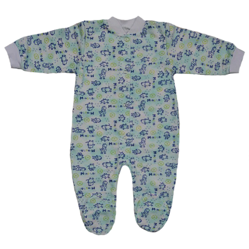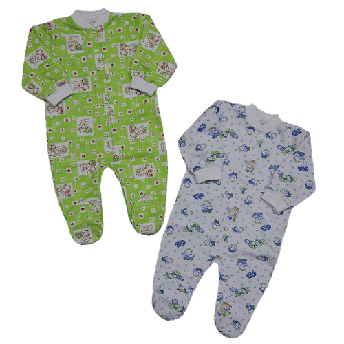 В каждой упаковке и партии расцветки и пропорция размеров может отличаться. Комбинезон с закрытыми ножками, с длинным рукавом на манжете, без воротничка, спереди на кнопочках.
