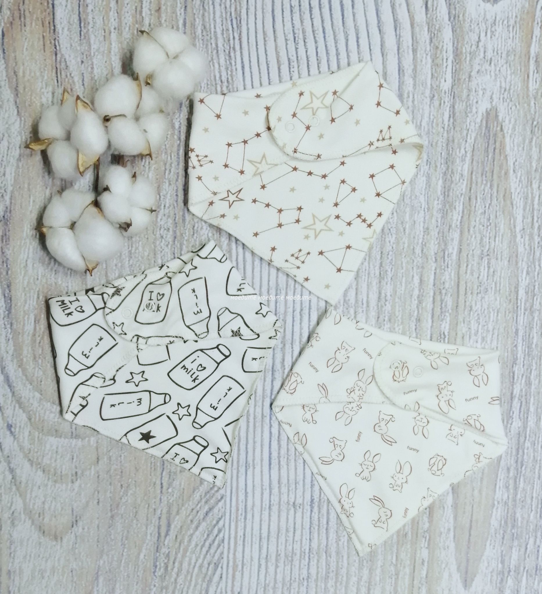 Нагрудник сзади застёгивается на две кнопочки. Выполнен из двух слоёв хлопка (без ПВХ). Нагрудник треугольной формы.