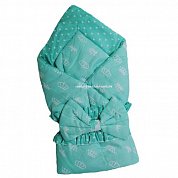 Одеяло выполнено из ткани с двумя разными рисунками, размер 100*100 см. Одеяло можно использовать для укутывания новорождённого, воспользовавшись для закрепления бантом на резинке, который идёт в комплекте.